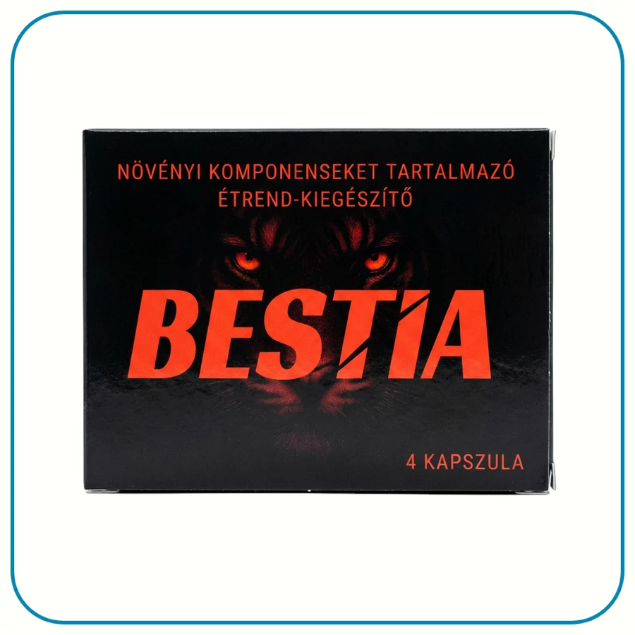 A BESTIA alkalmi potencianövelő férfiak számára készült, növényi komponenseket tartalmazó étrend-kiegészítő kapszula, amely a szexuális vágy, a fizikai erő és a férfi teljesítmény időszakos támogatására lett összeállítva.